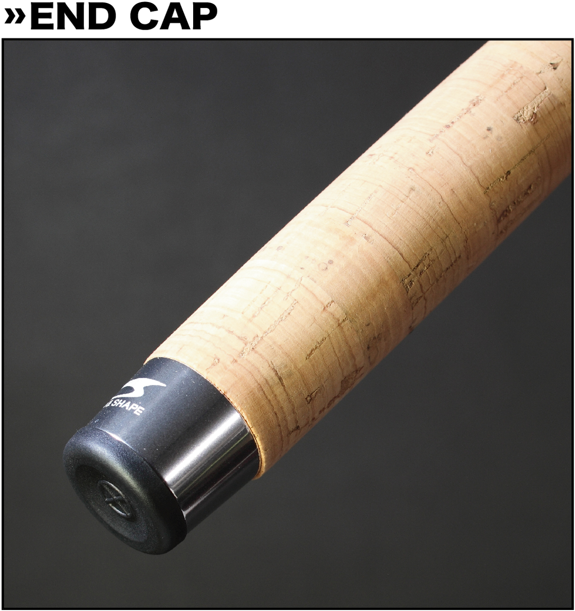 機能性と美しさを兼ねたオリジナルシルバーアルミ+ラバーエンドキャップ。フィールドで使用した際にキズがつきやすいエンド部分はゴムパーツでしっかりと保護します。室内でもフローリングなど金属やハードウッド、プラスティックのキャップでは滑りやすい場所に置いた時もゴムが効いてロッドの転倒を防いでくれます。アルミ金具フロント面にTAPER&SHAPEのレーザー刻印、ゴムエンド部分にはデザイナーの証となるトレードマークが立体成型されています。